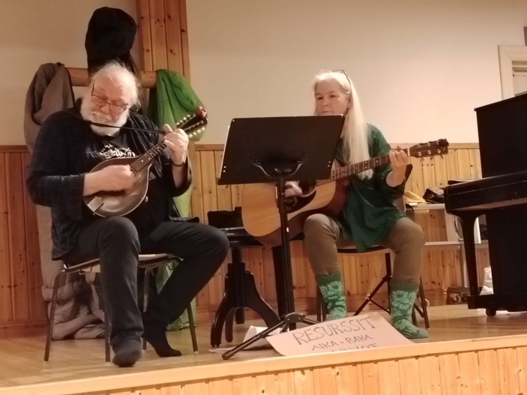 Kansanmusiikkia ja yksinkertaisia kansantansseja koko porukalla: Pentti Ojajärvi, ja Leila Luukkainen